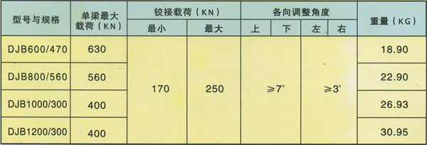 DJB型金屬鉸接頂梁技術(shù)參數(shù)
