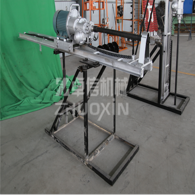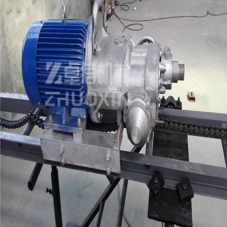 為了延長(zhǎng)鉆頭的使用壽命及改善操作者的勞動(dòng)條件,采用水排粉即濕式鉆孔,在鉆孔作業(yè)中,只需操縱手輪,電鉆就可自行推進(jìn)和快速退架。