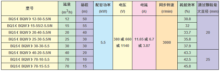 BQS(W)2.2KW的礦用隔爆型排污排沙潛水電泵技術(shù)參數(shù):