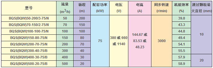BQS(W)礦用隔爆型排污排沙潛水電泵技術(shù)參數(shù):